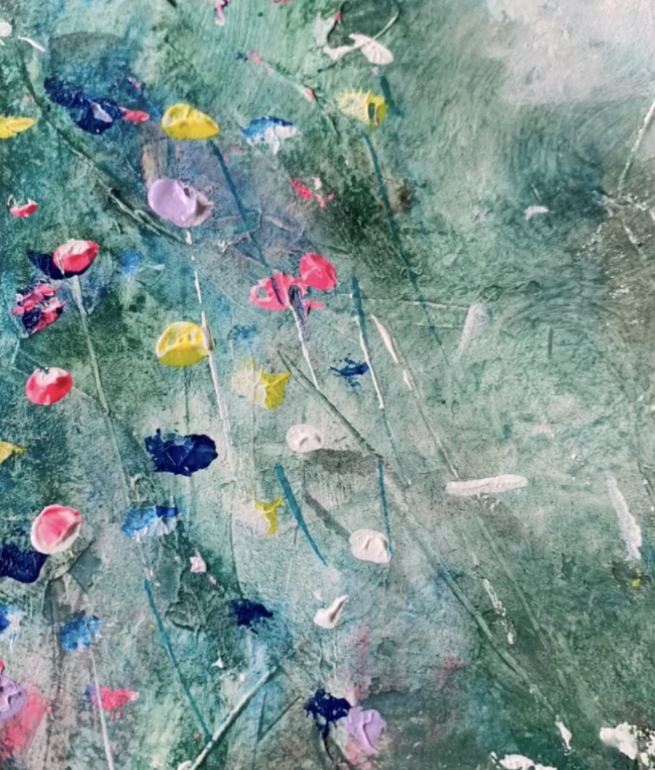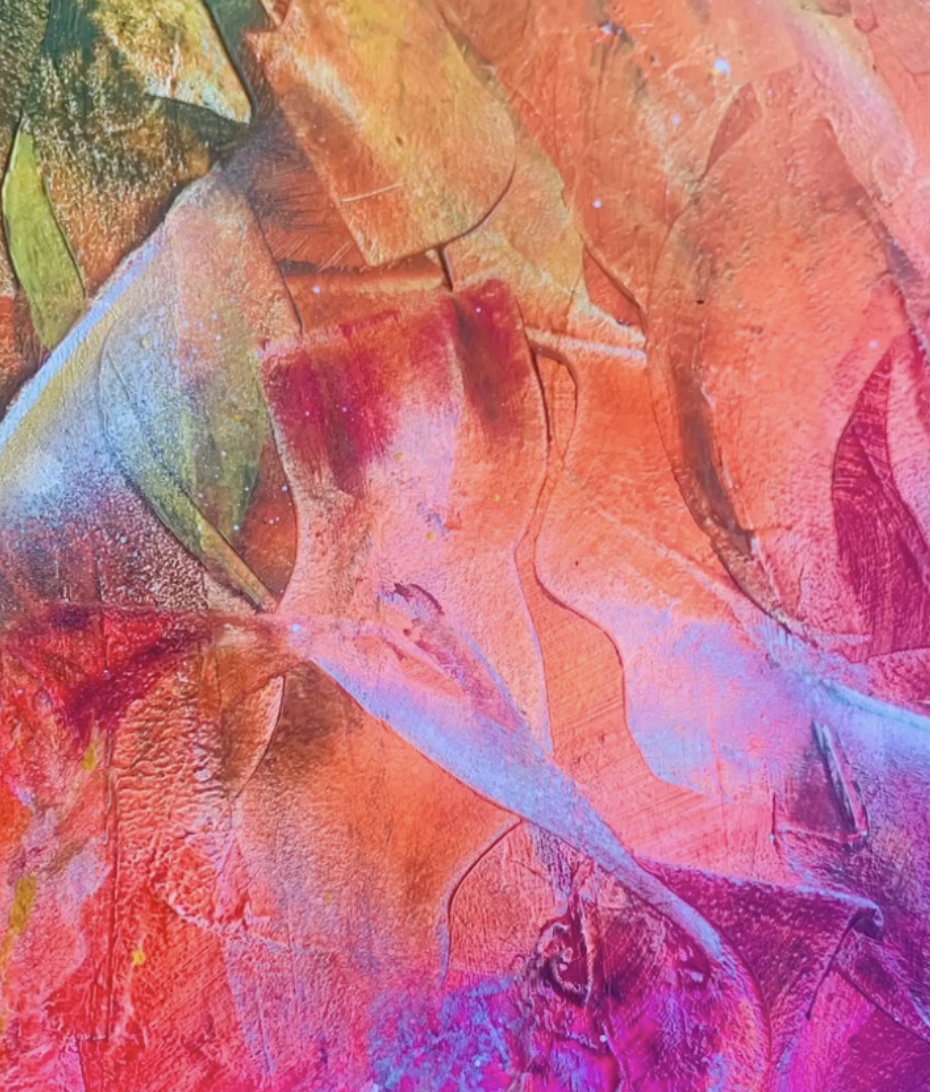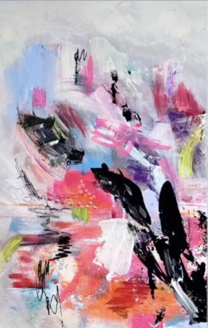 Her art is intuitive, emotional, and evolving. She paints abstractly not to escape form, but to express freely — without limits, without repetition. Her process follows no fixed plan. It follows feeling.
